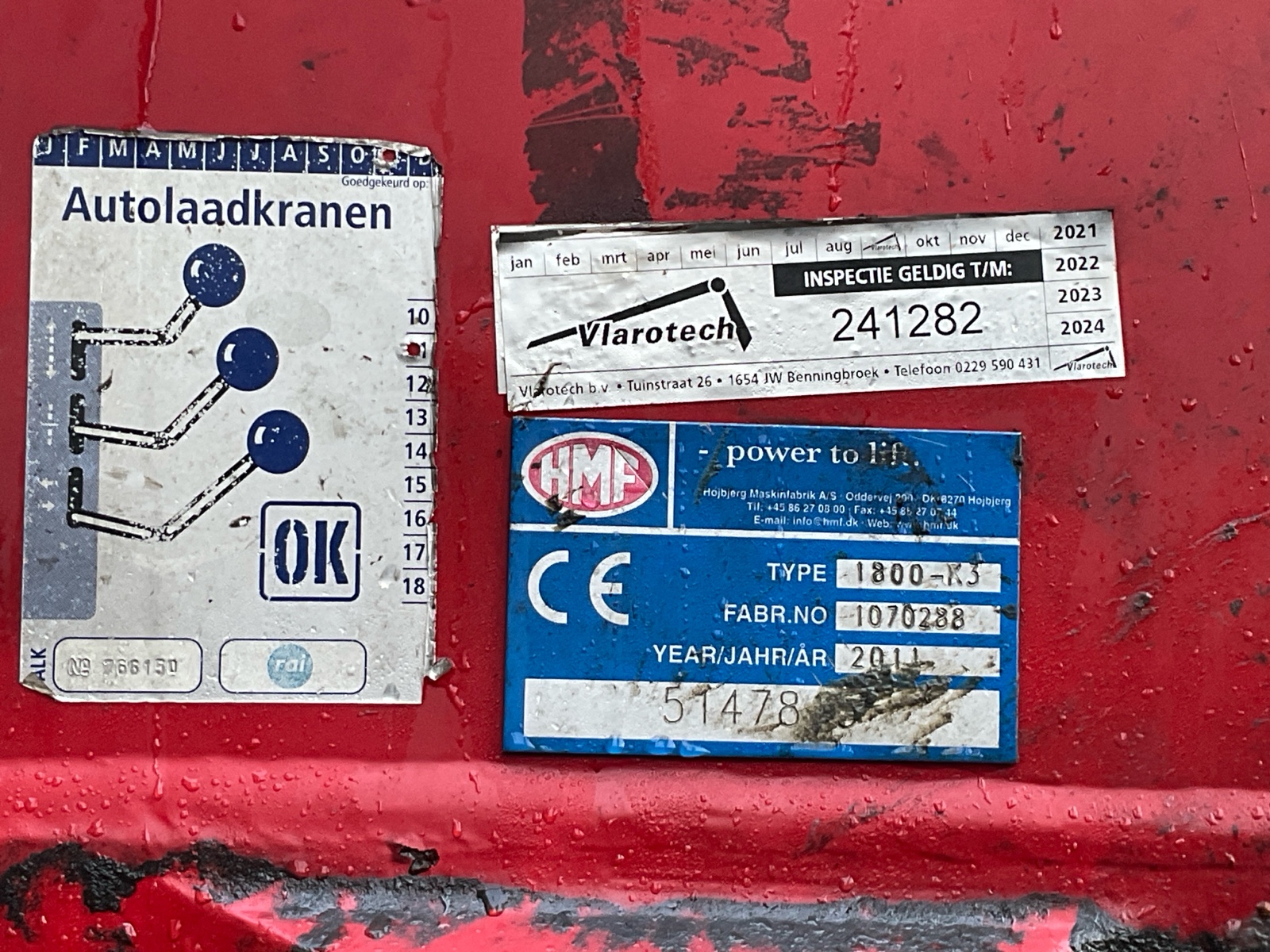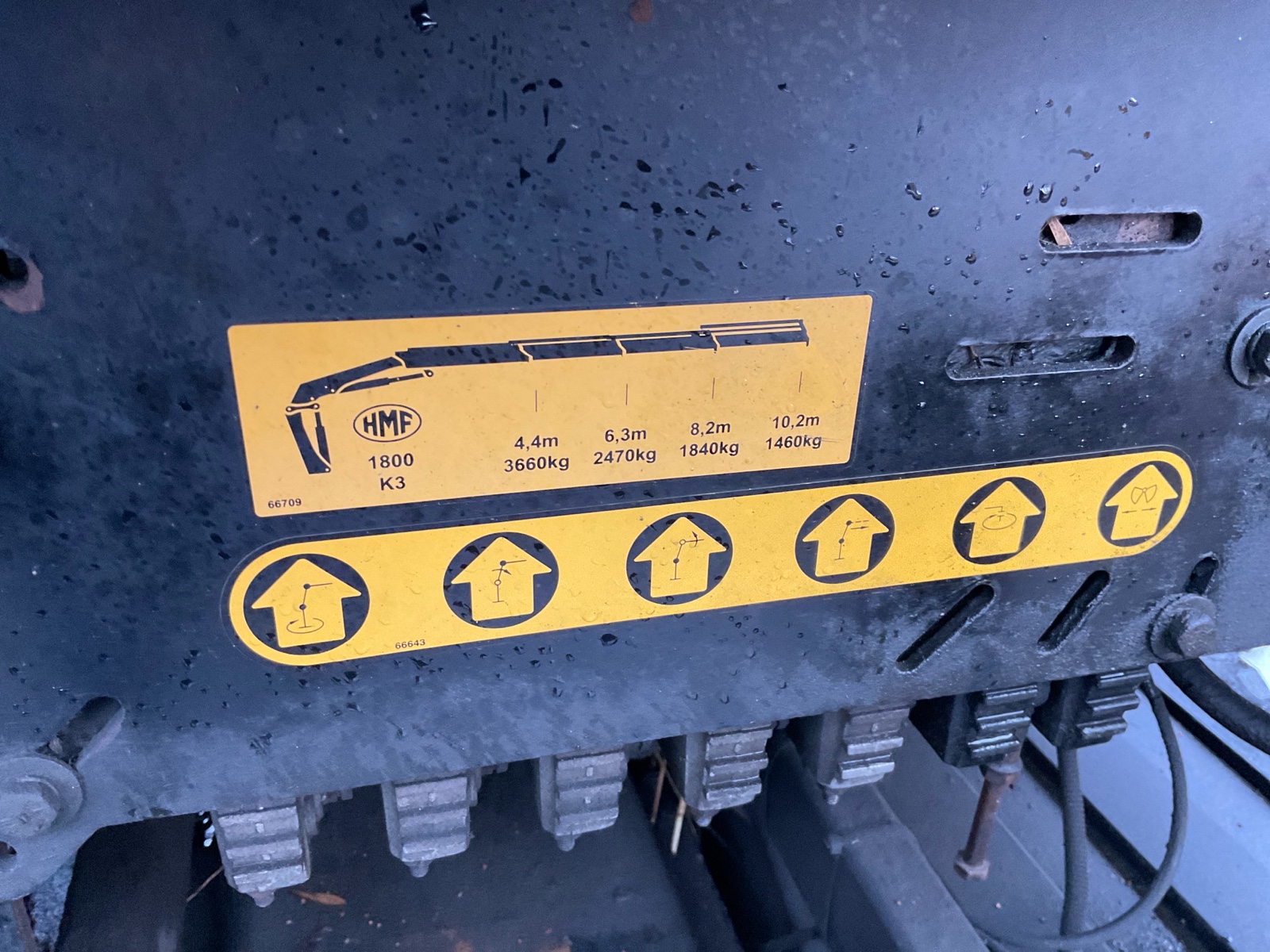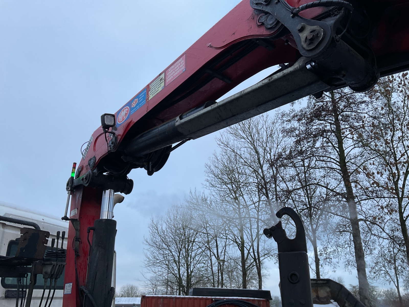 | Constructie beschrijving | HMF 1800 3x uitschuifbaar met afstandsbediening (Filmpje) Rotator en haak Hyvalift 22 53S 22 tons haak Laatste kraankeuring 20-9-2025 marge auto |
