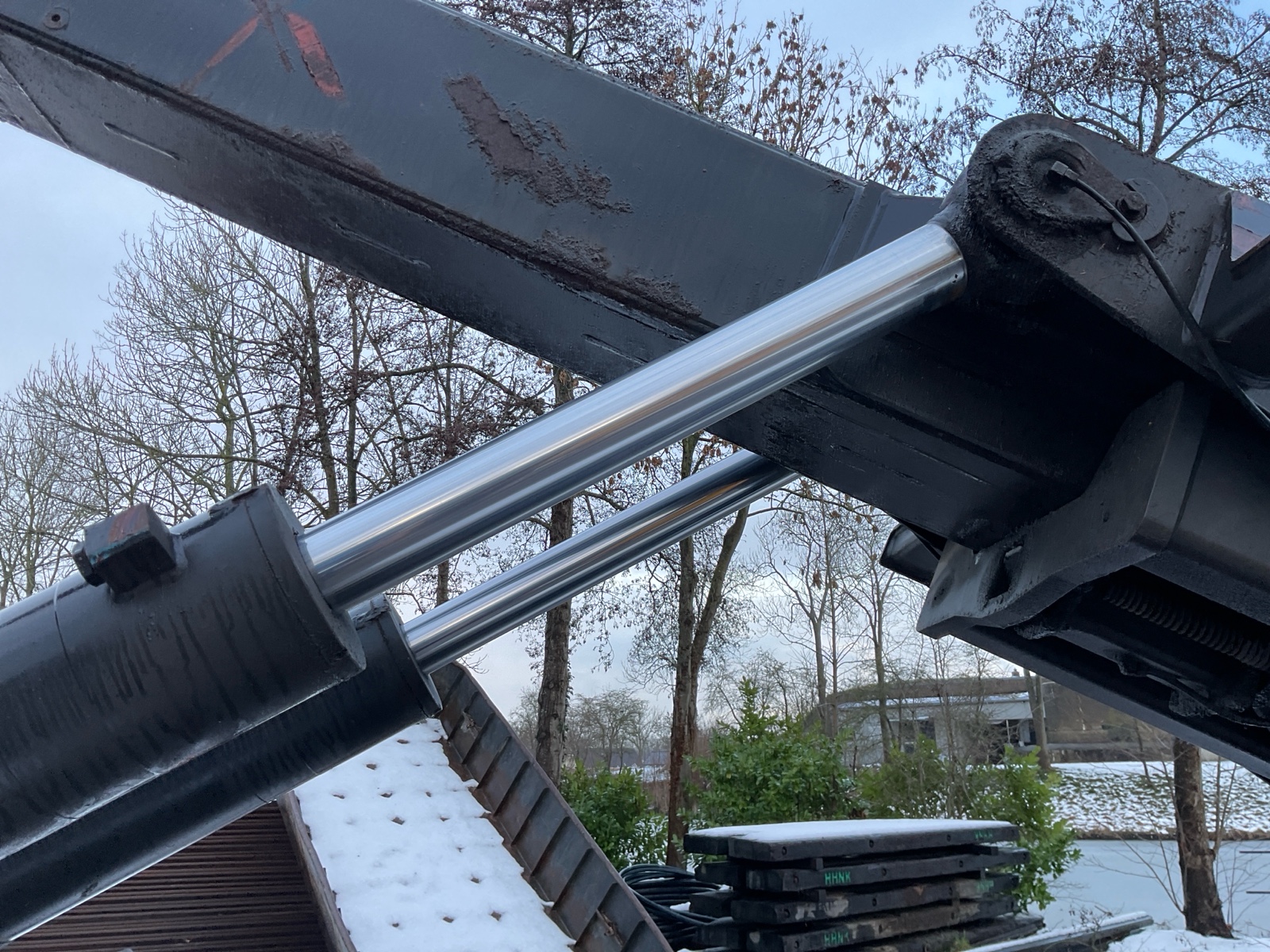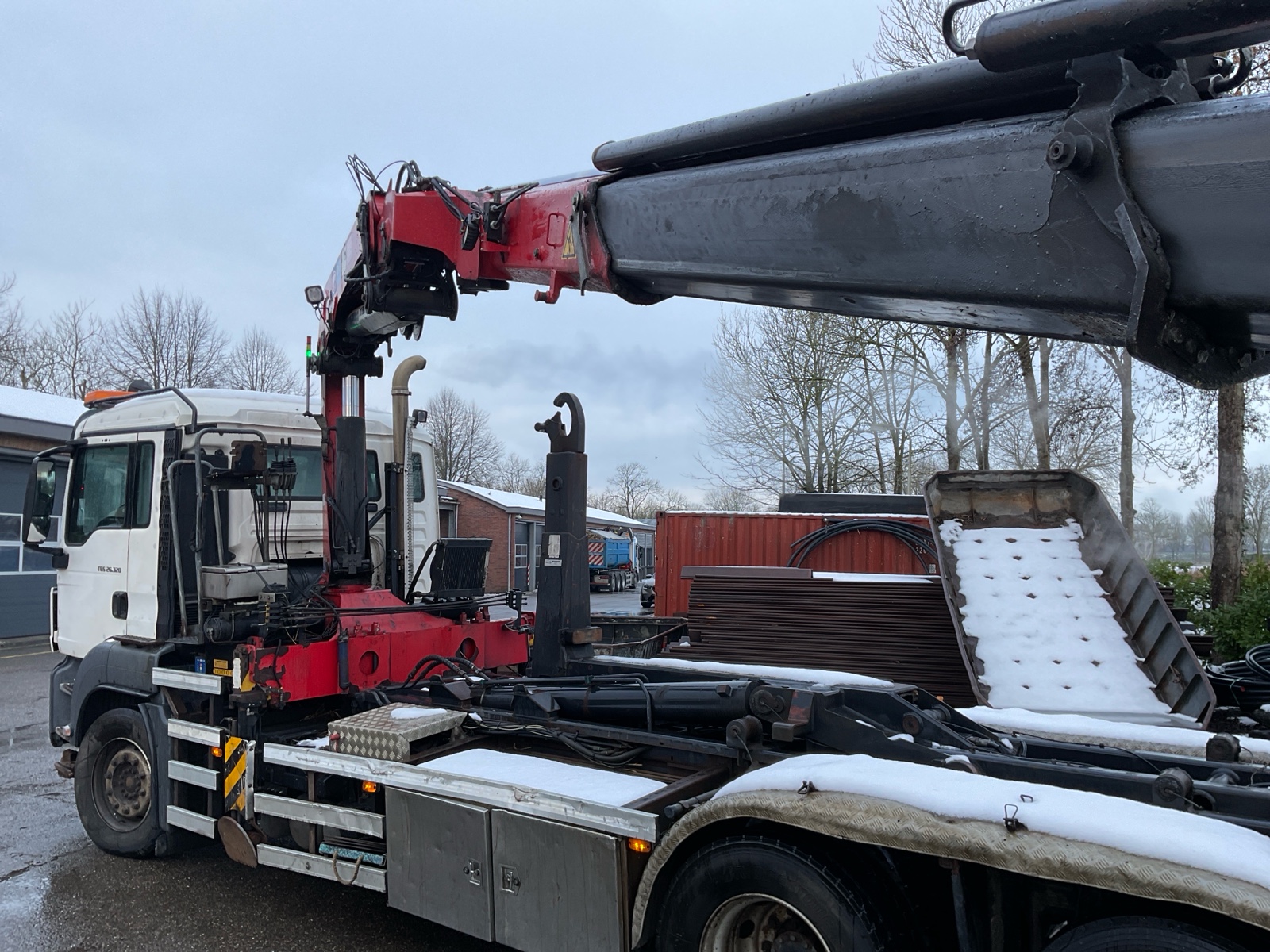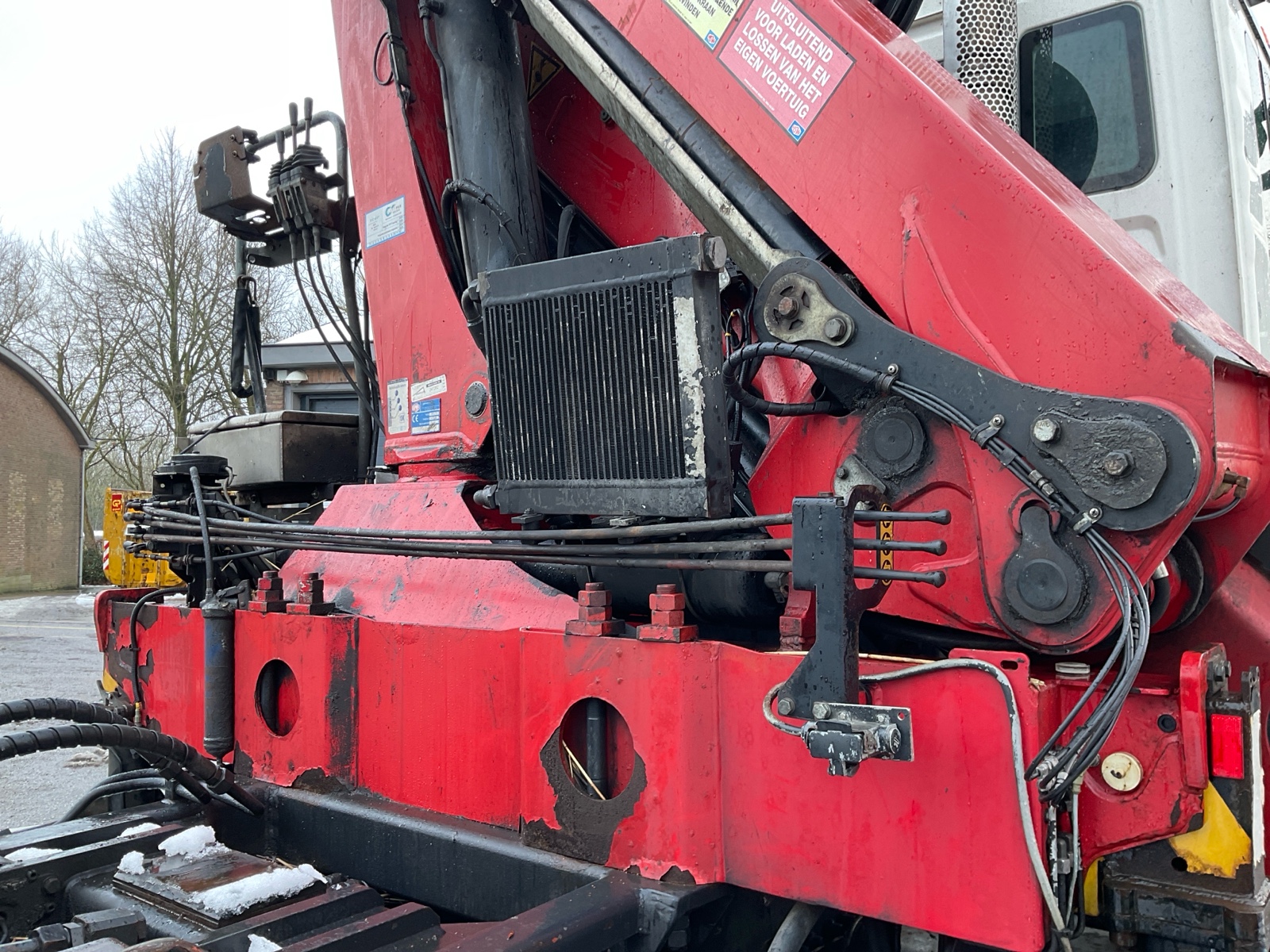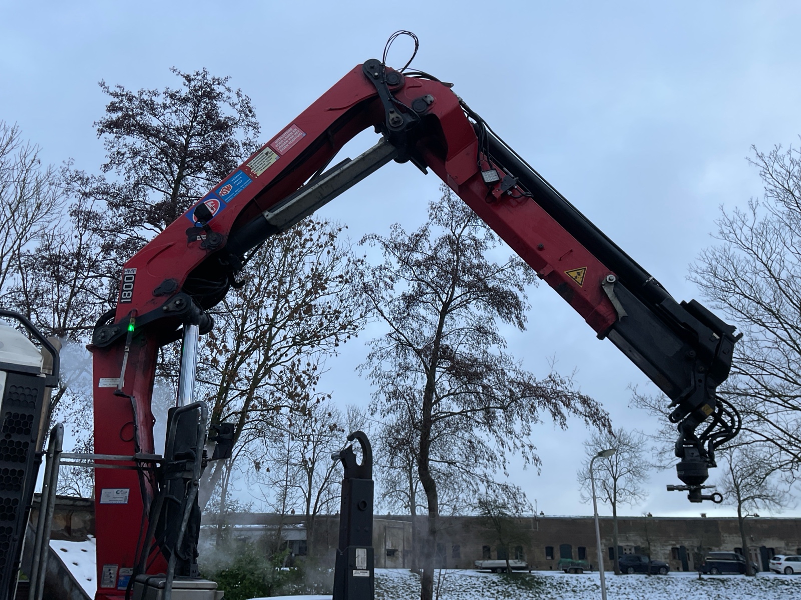 | Constructie beschrijving | HMF 1800 3x uitschuifbaar met afstandsbediening (Filmpje) Rotator en haak Hyvalift 22 53S 22 tons haak Laatste kraankeuring 20-9-2025 marge auto |