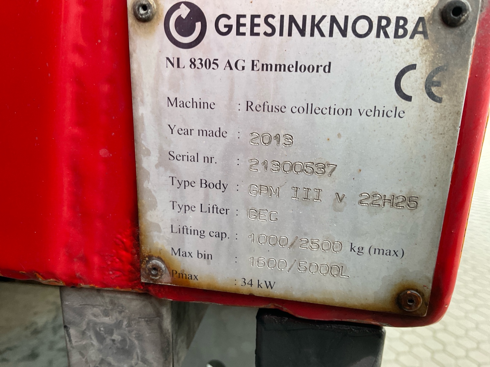 | Constructie beschrijving | Welvaarts weegsysteem Geesink GPM3 22H25 van 2013 met GEC belading Op transport ivm storing! |