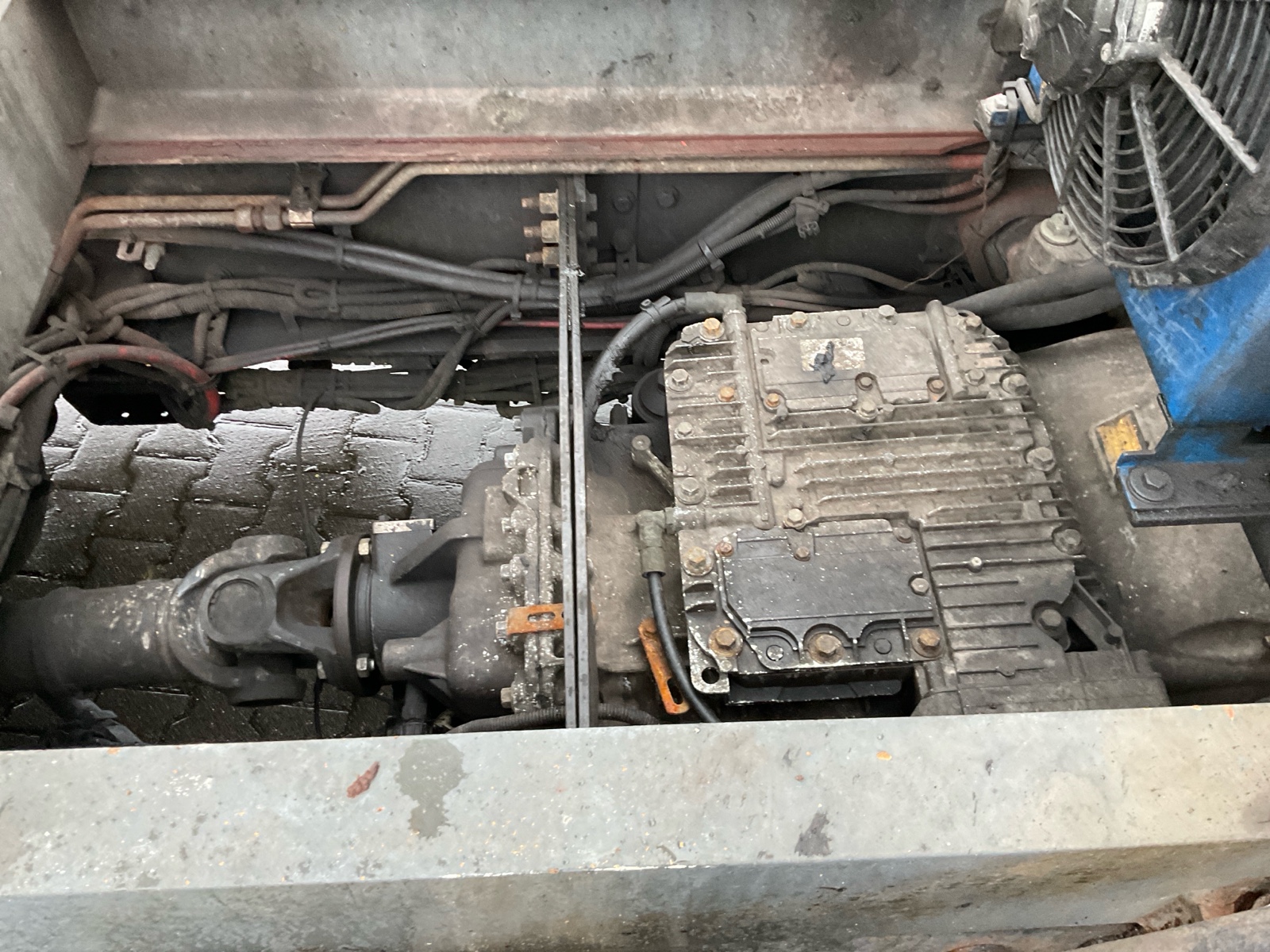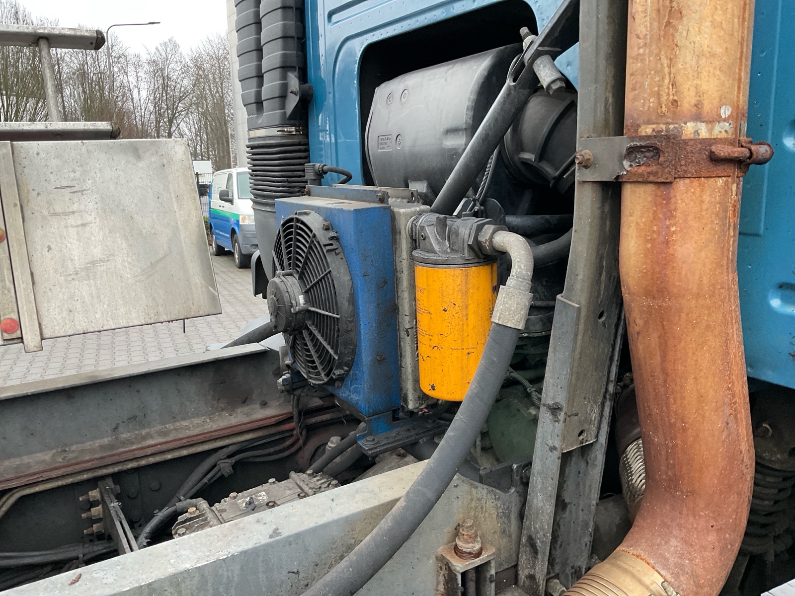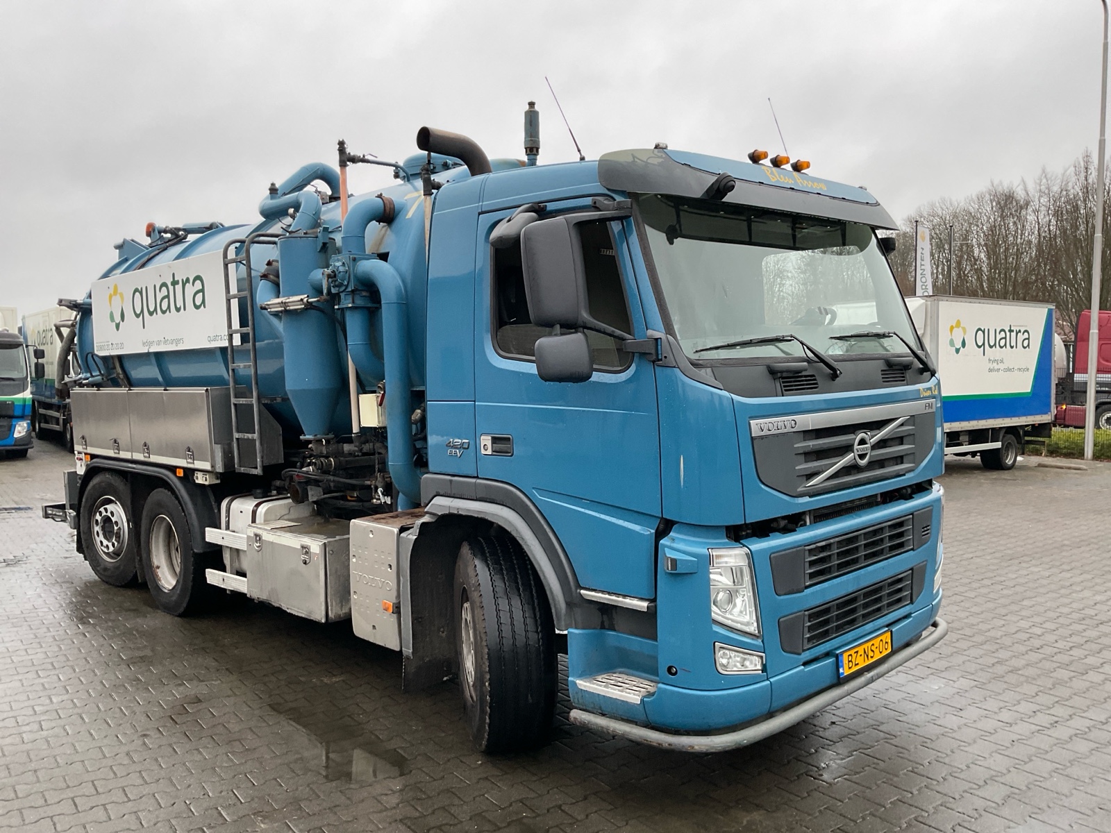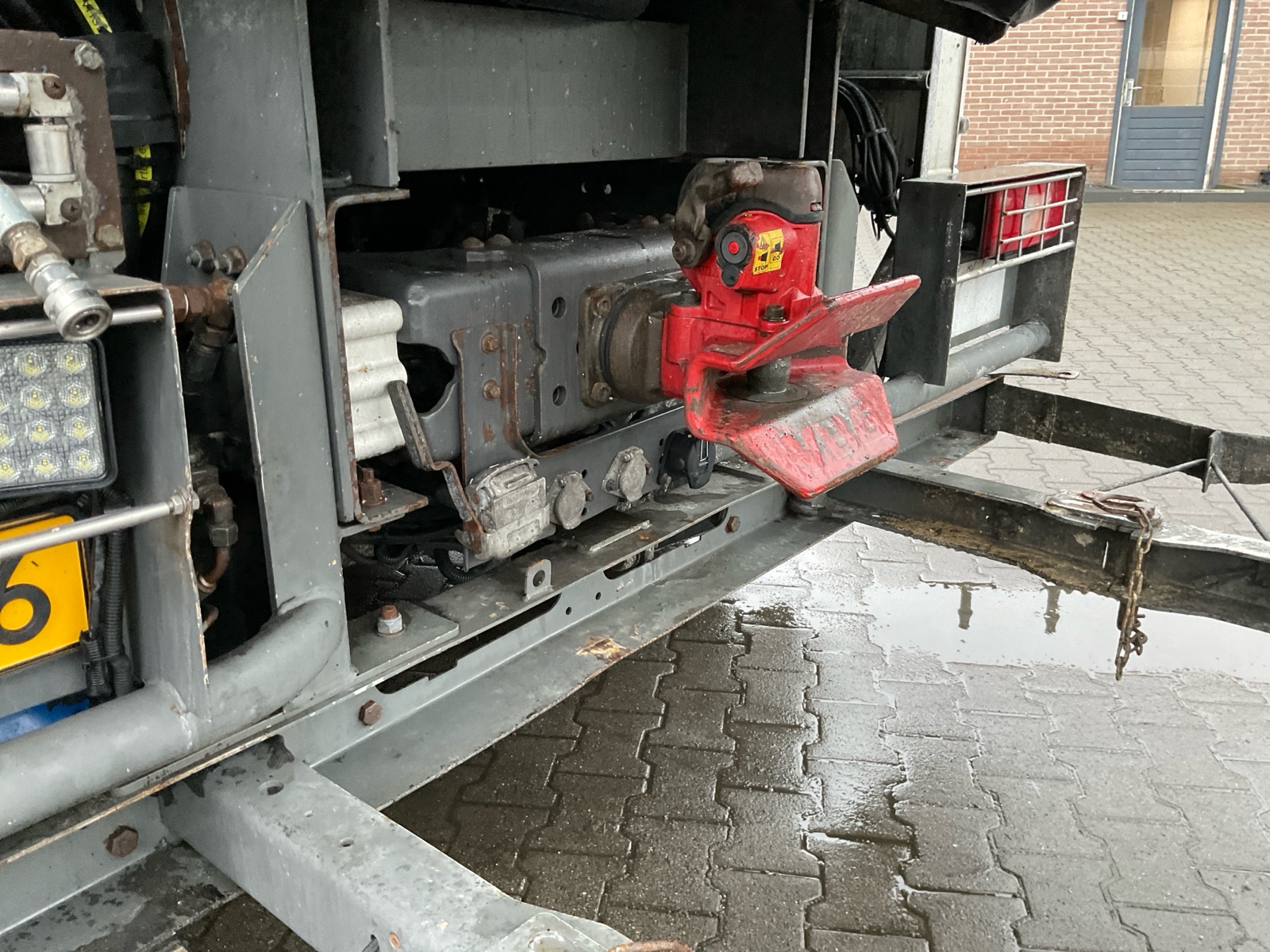 | Constructie beschrijving | Tank wordt gereinigd geleverd Exclusief trap en zijslangen Haspel blijft compleet inclusief slang Vacuüm wagen van merk DHM 13,5 m3 slibinhoud en 1,4 m3 spoelinhoud Samson V30 vacuüm pomp. 2000 m3 per minuut Aquabar hogedrukpomp max 150 bar en 50 liter per minuut Zuighaspel hydraulisch horizontaal en verticaal te verstellen. Hydraulisch op en afrol Weeginstallatie op luchtvering |