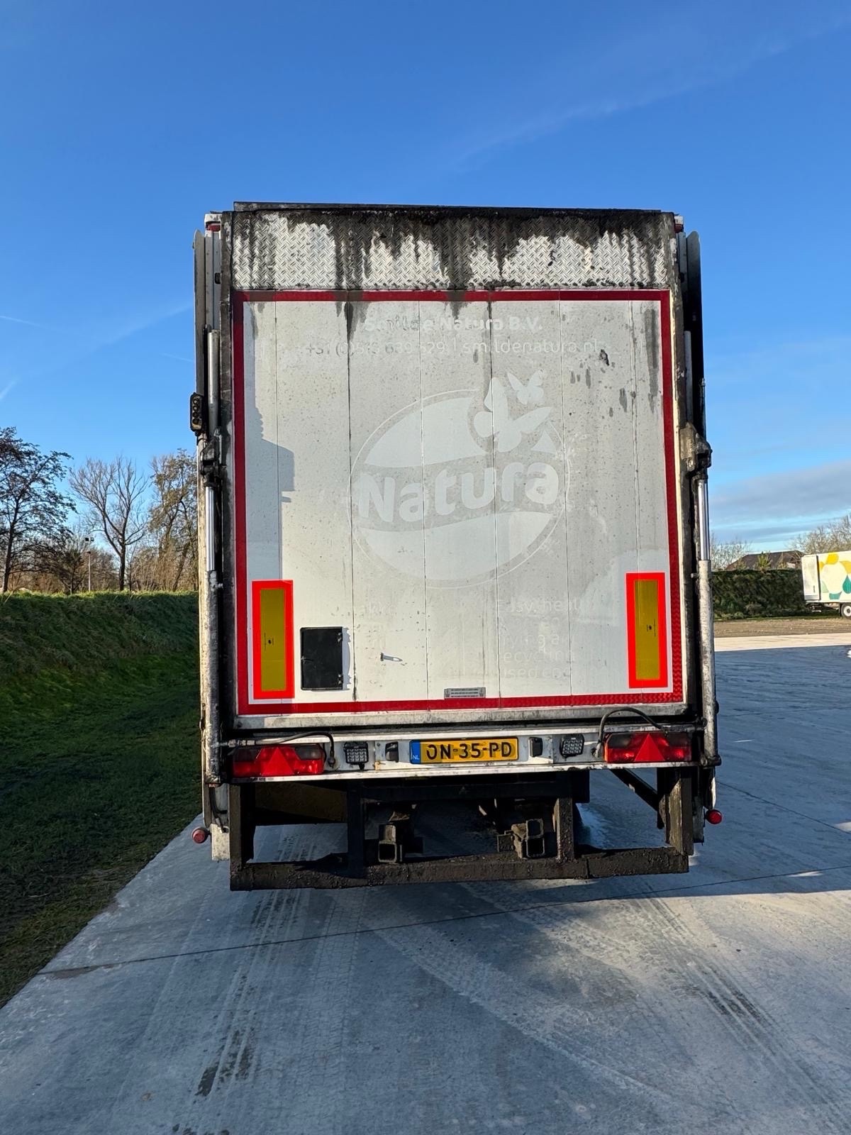 | Constructie beschrijving | Aluminium opbouw Laadvloer van onder naar boven 1200 + 1200 onderste vloer en tussen vloer Aluminium vloer Edscha schuifdak met meeschuivende eindbalk Cuppers PL2006 laadklep 2000 kg. RVS opklapbare leuningen. Platform 1e en 3e aslift |