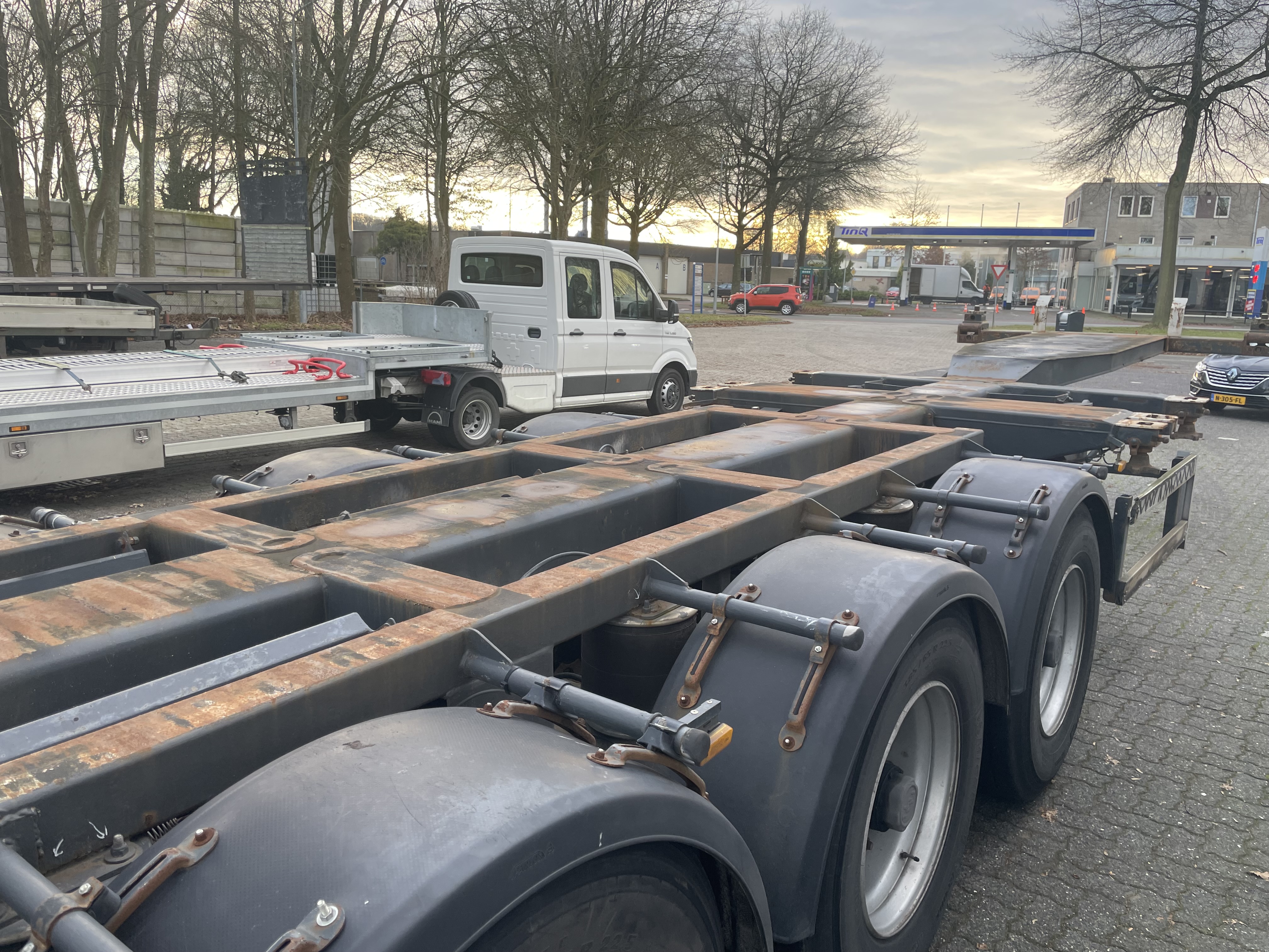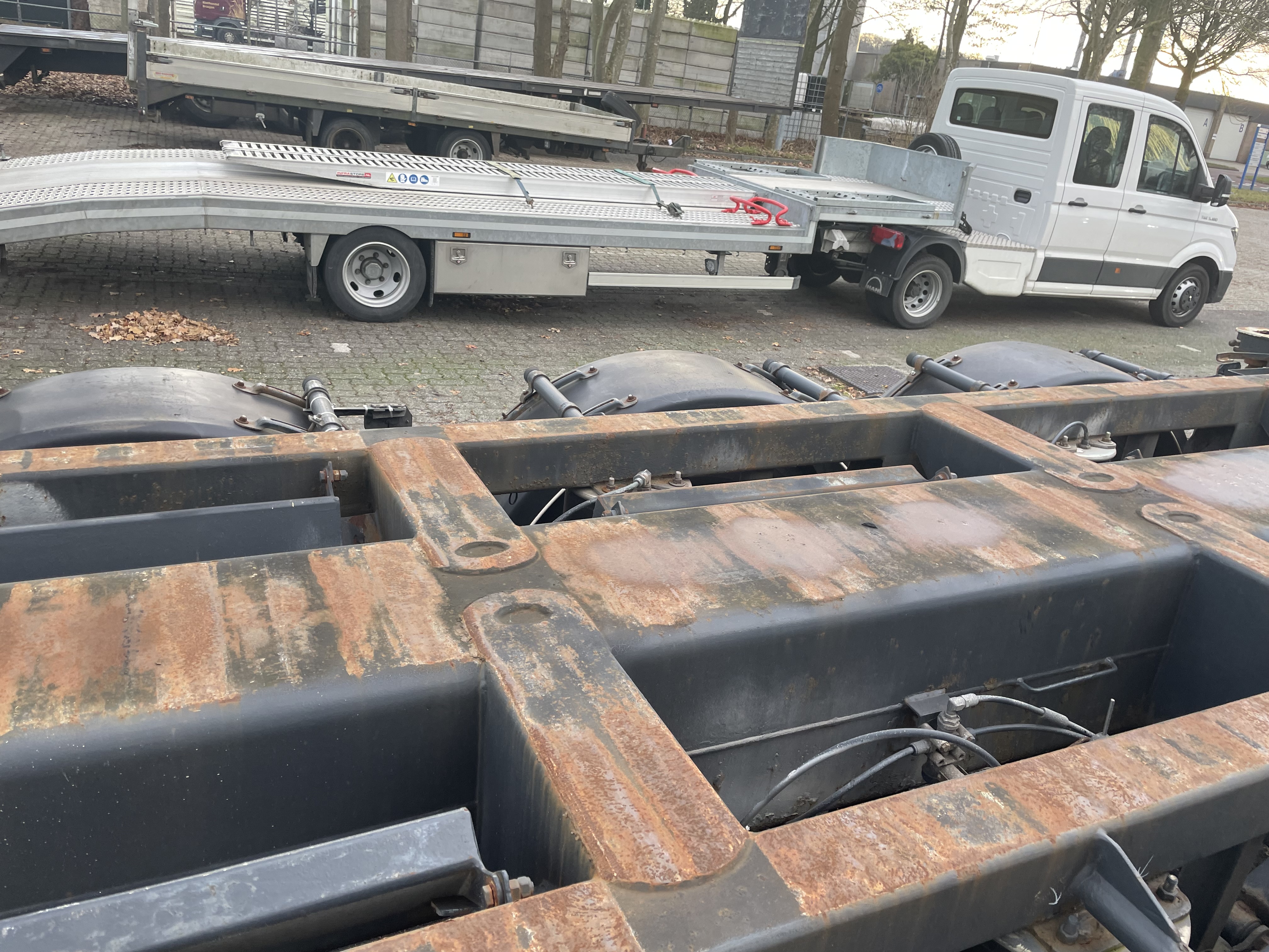 | Constructie beschrijving | Uitschuifbaar chassis tbv 20ft 2x20ft 30ft 40ft 40ft HQ Trommelremmen |
