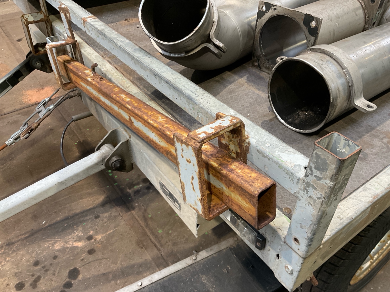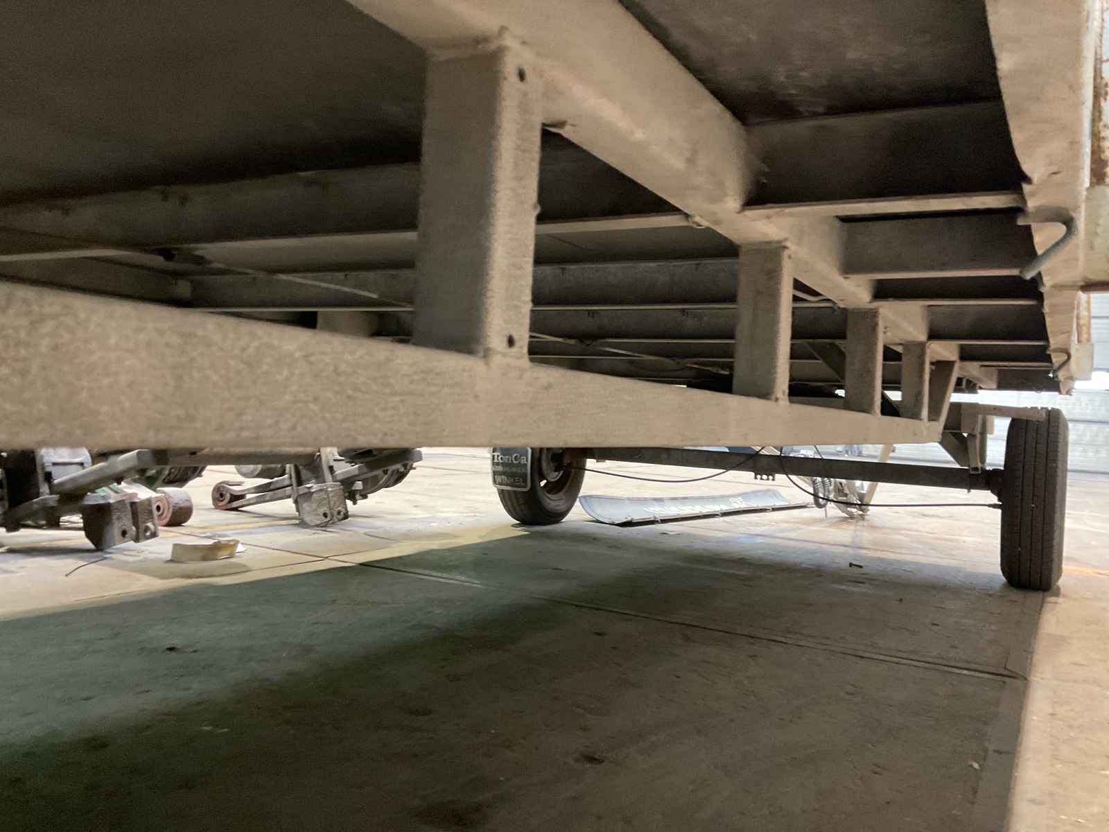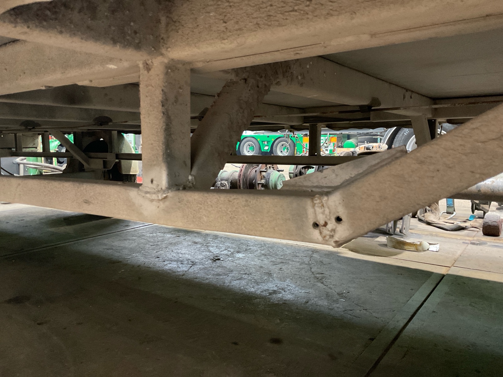 | Constructie beschrijving | Vlakke schamel aanhanger Onlangs nieuwe draaikrans en dissel gekregen |