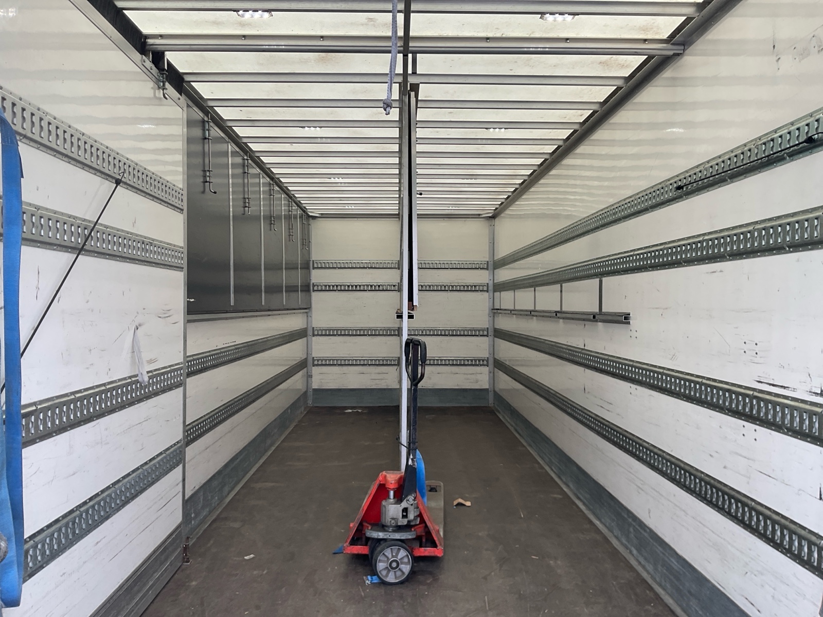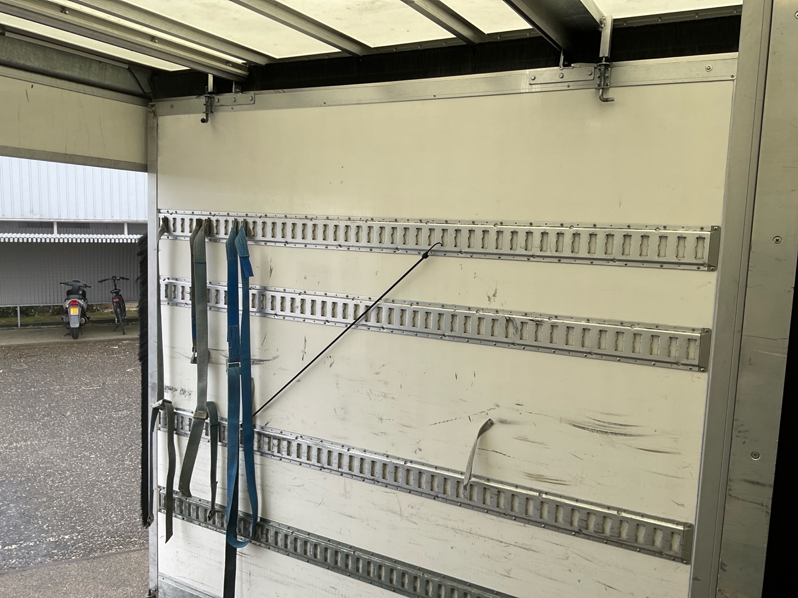 | Constructie beschrijving | Speciale inrichting in laadruimte EXCLUSIEF DE Tweede vloer. Scharnierbare planken gaan over naar volgend voertuig! 4 hoogtes cargorail Laatste 2,5 meter van separatiewand kan weggeschoven worden Excl pompwagen en spanbanden |