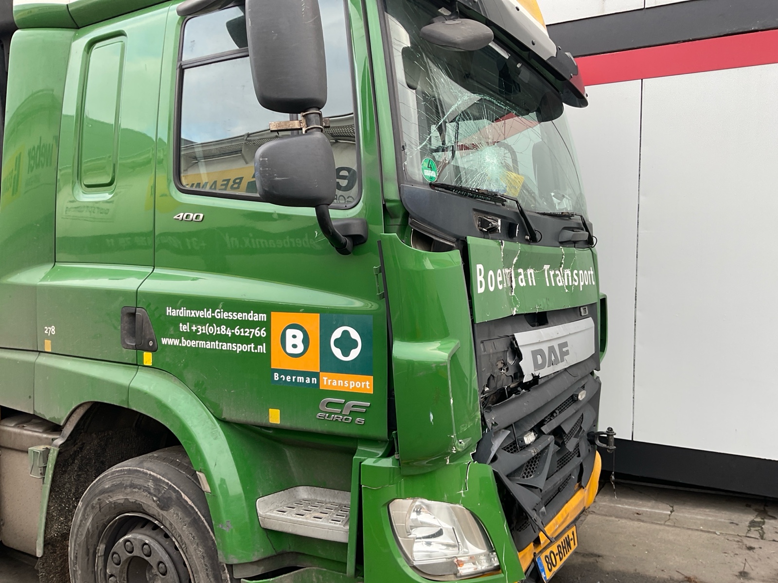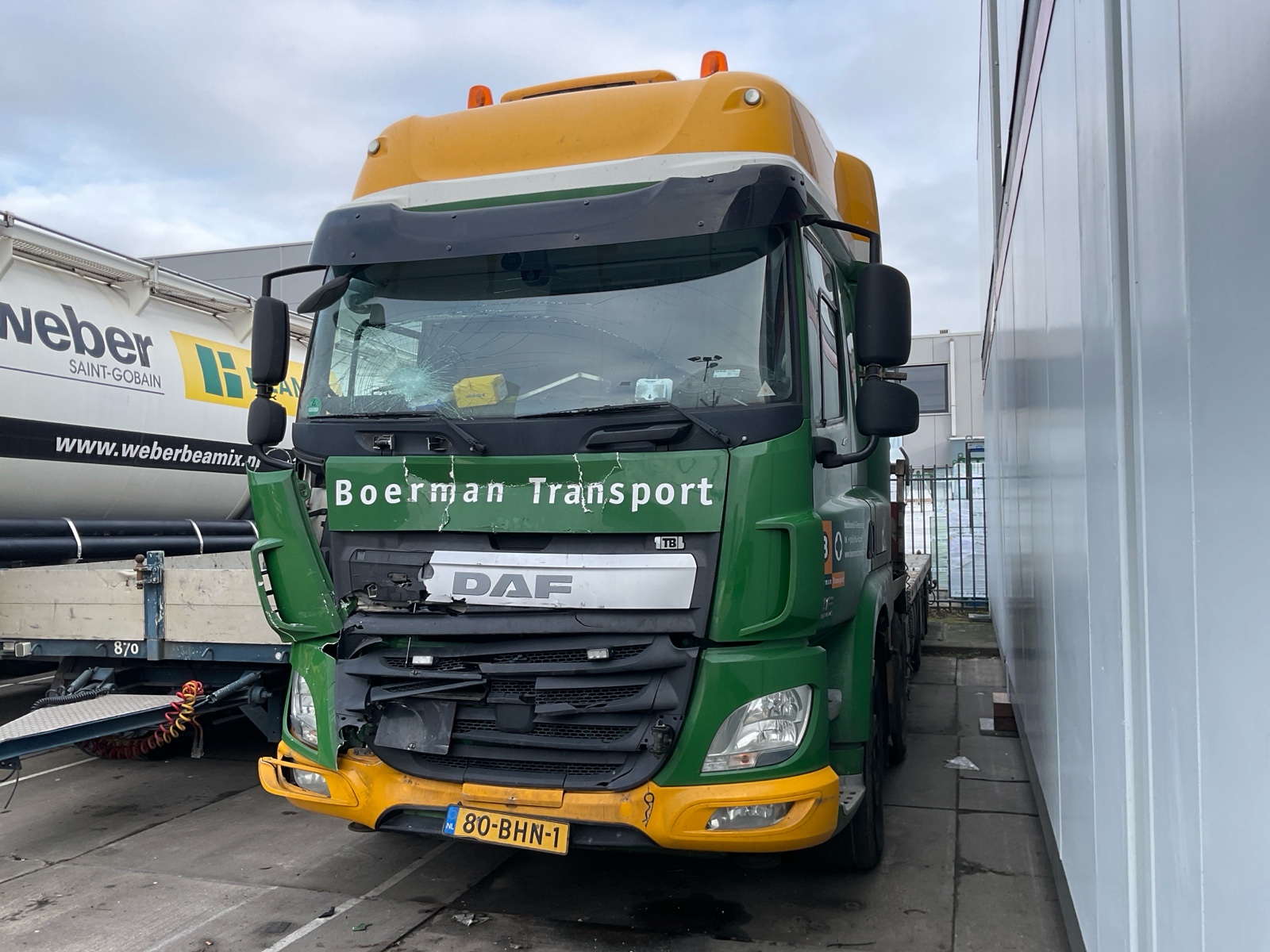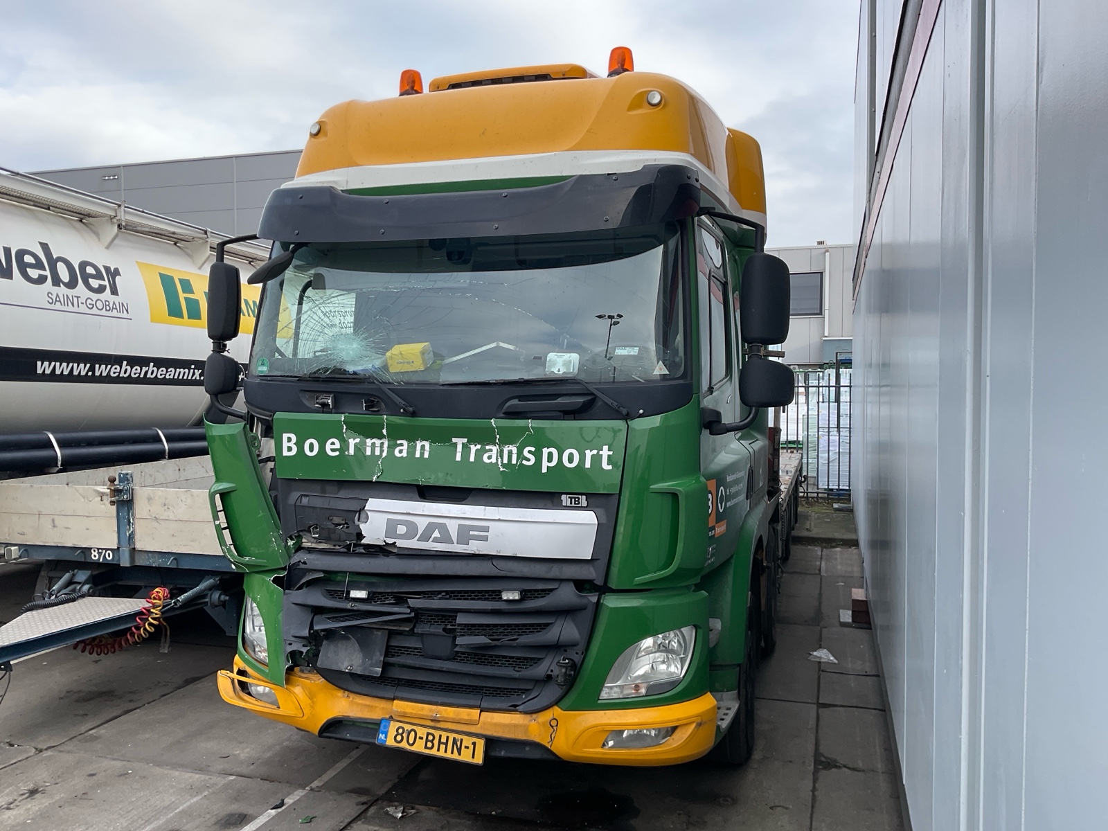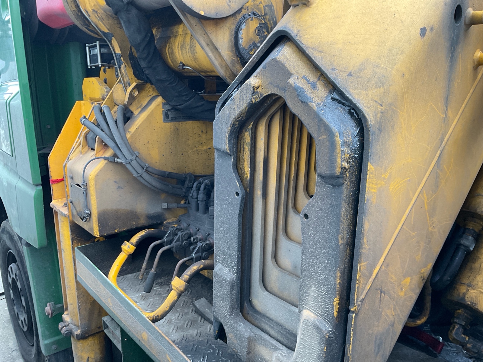 | Constructie beschrijving | Openlaadbak met 4x twistlock, kisten, ronggaten en zware kantbalken met sjorogen Geschopeerde bak Hiab 700 E-8 van 2001 8x hydraulisch uitschuifbaar Afstandbediening Excl evenaar Frontstempels |
