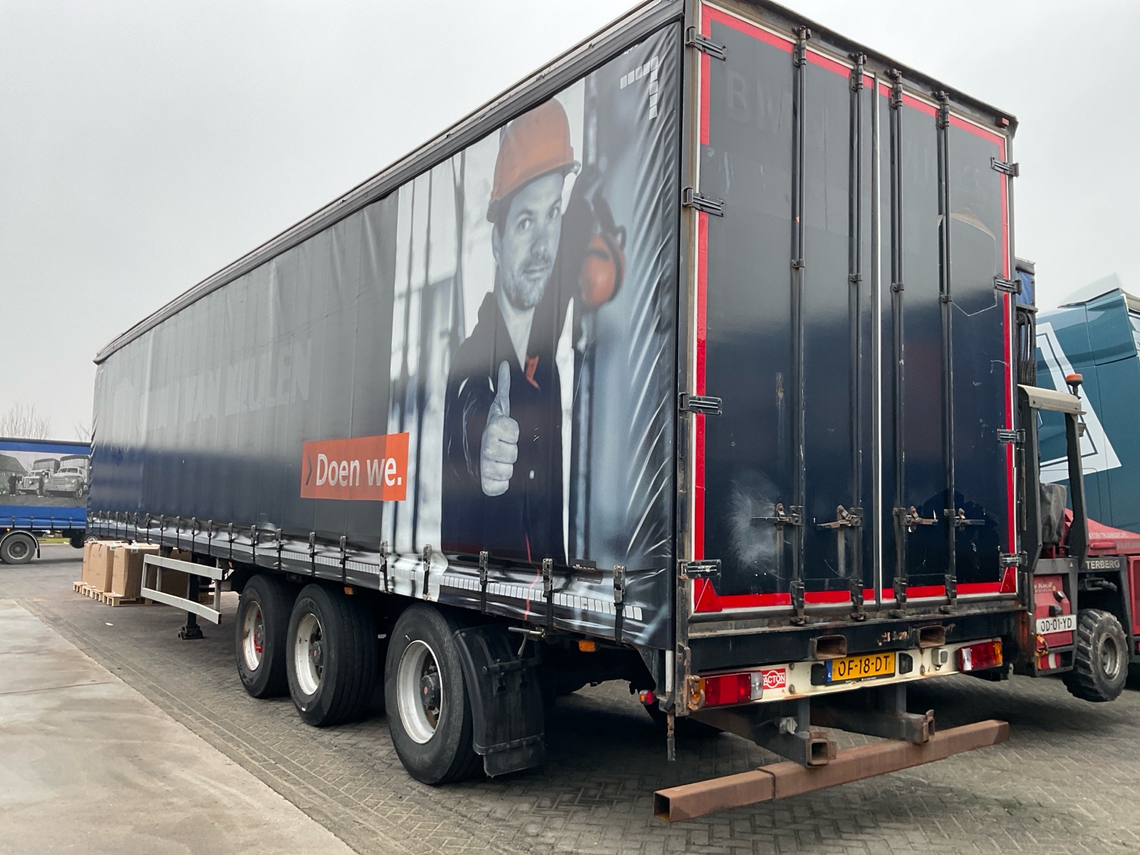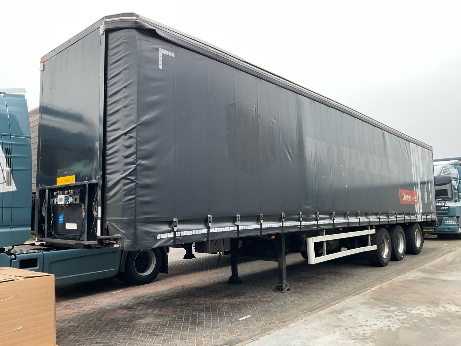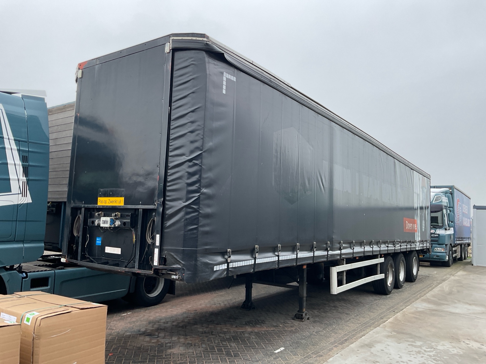| Constructie beschrijving | Schuifzeilen trailer met kabelgestuurde as. NIEUWE APK |