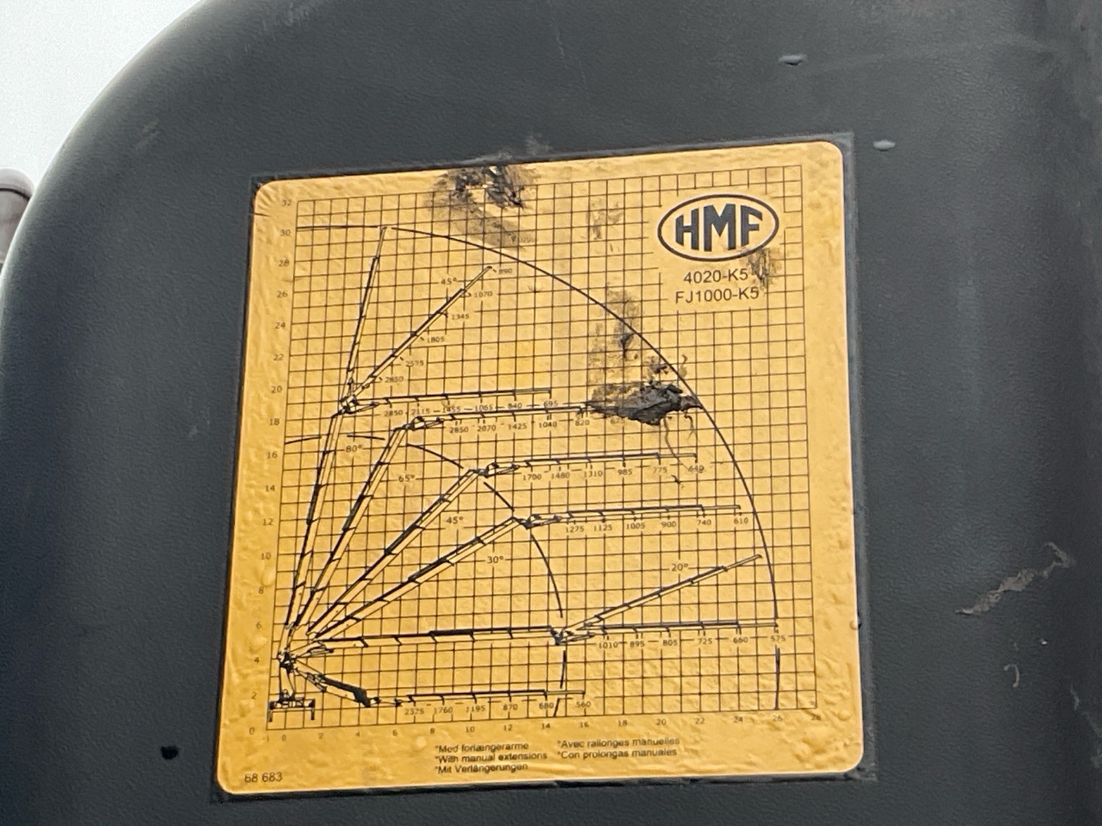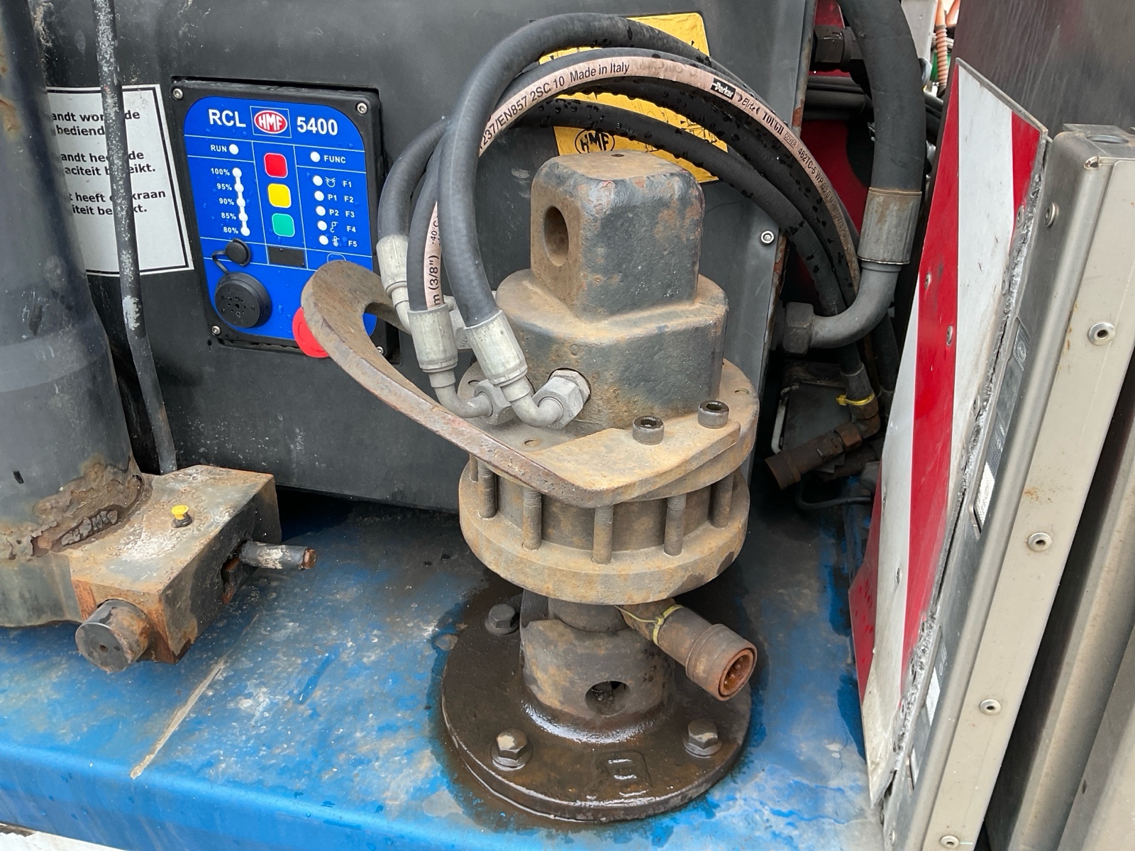| Constructie beschrijving | Schuifschotel HMF 4020-K5 5x hydraulisch uitschuifbaar en 1x handdeel Extra functies voor rotator. Rotator los gemonteerd en bijgeleverd |