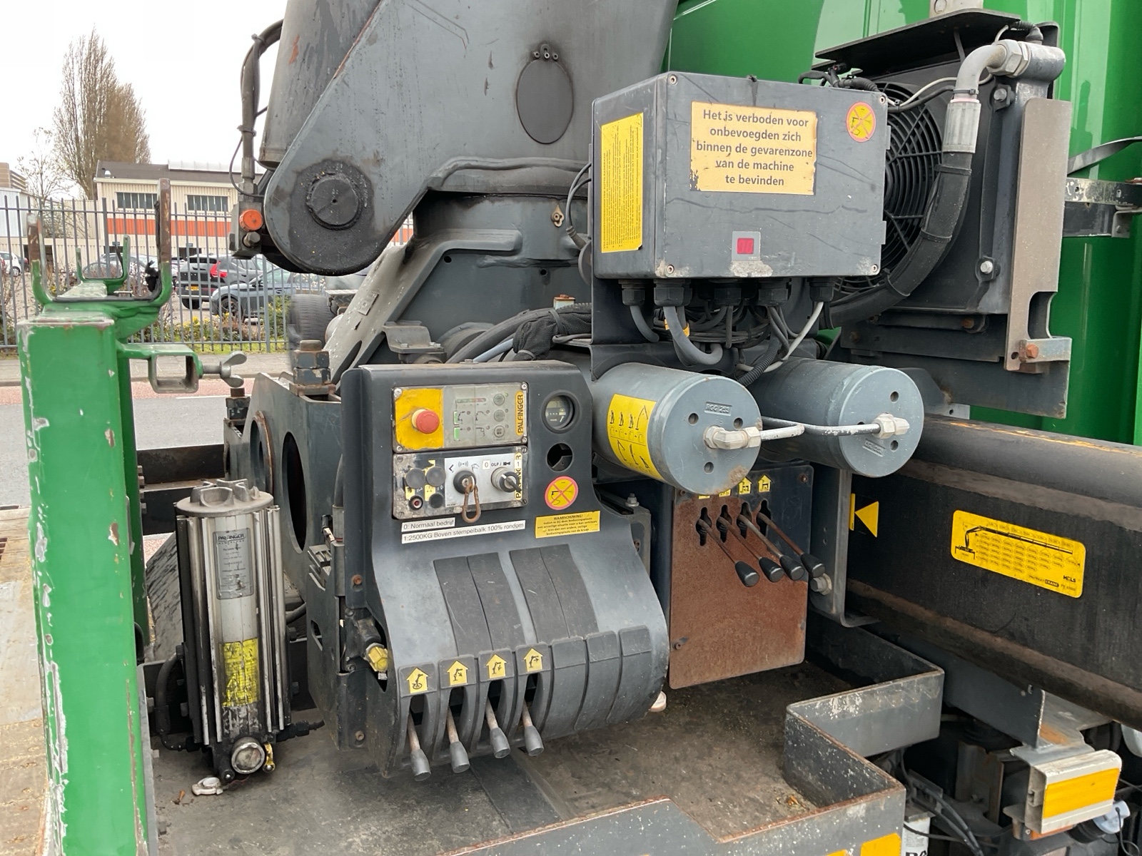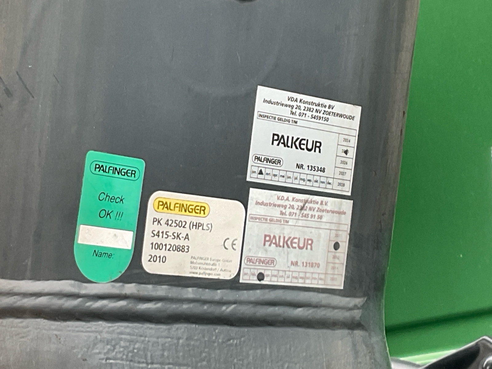 Constructie beschrijving Palfinger PK 42502 HPLS van 2010 6x hydraulisch uitschuifbaar Afstandbediening 4x gestempeld Twistlocks inklapbaar Ronggaten RVS kisten