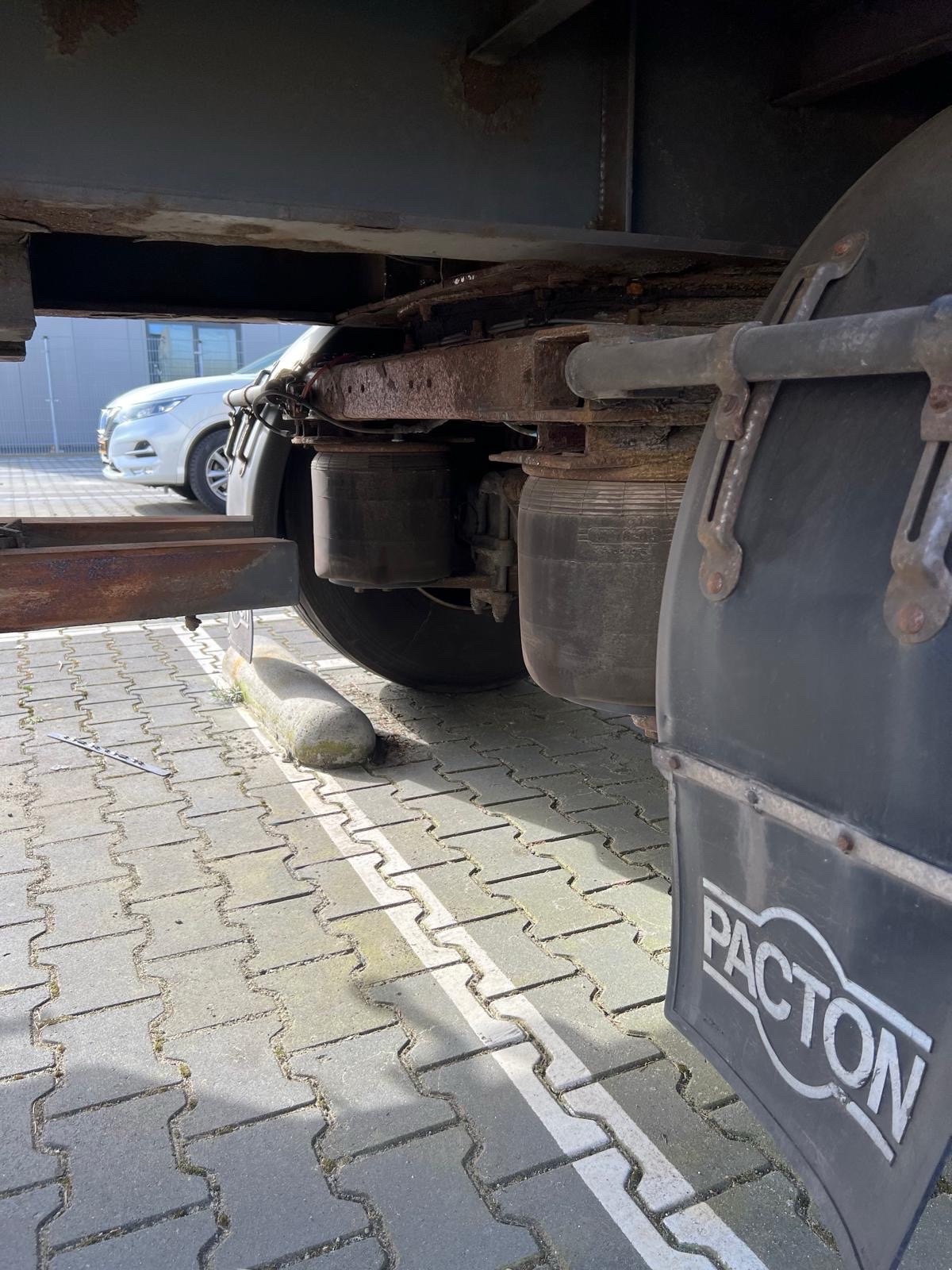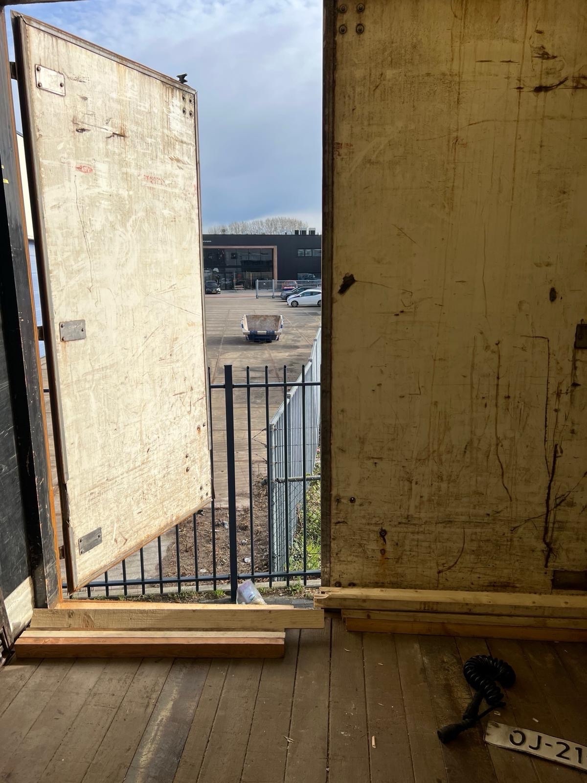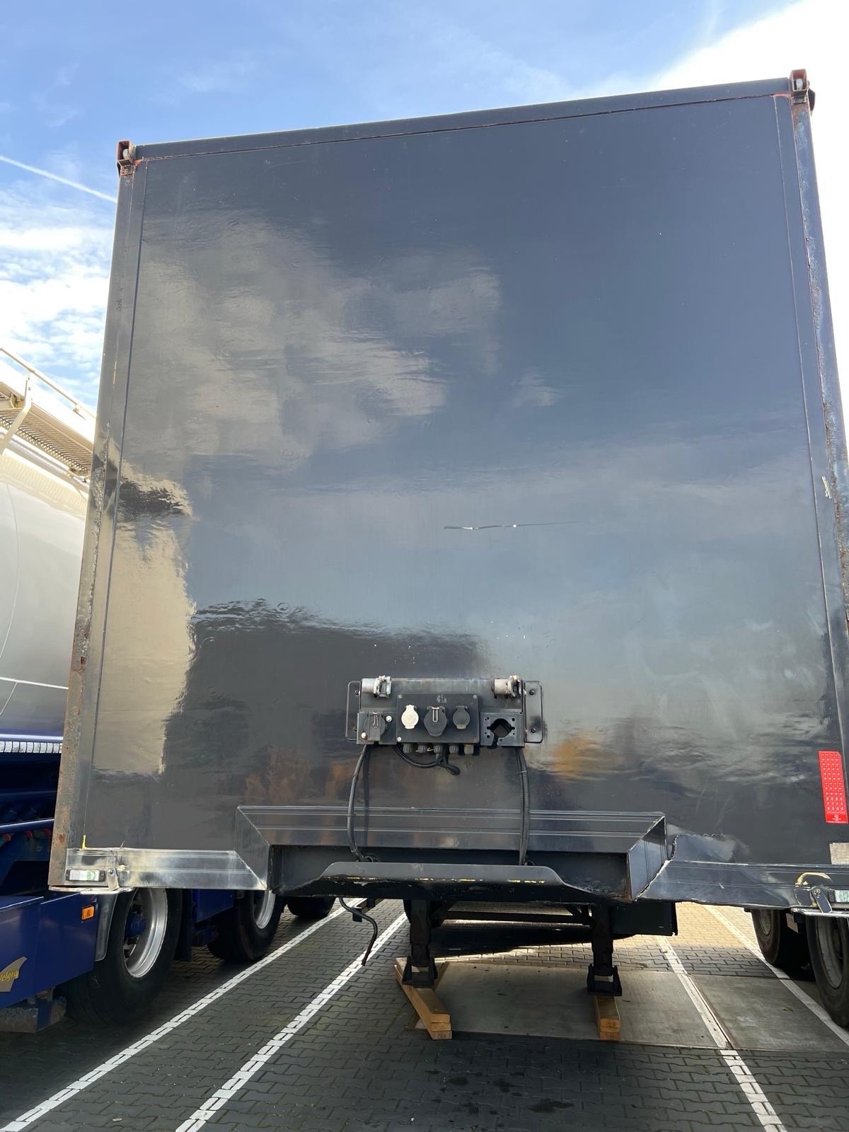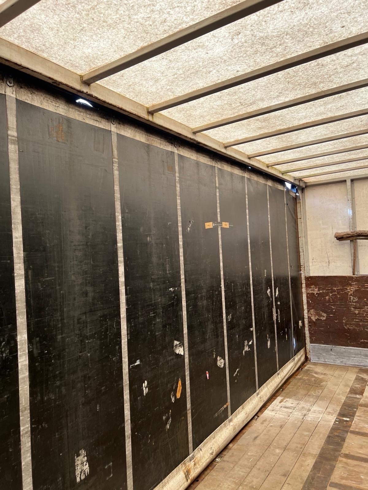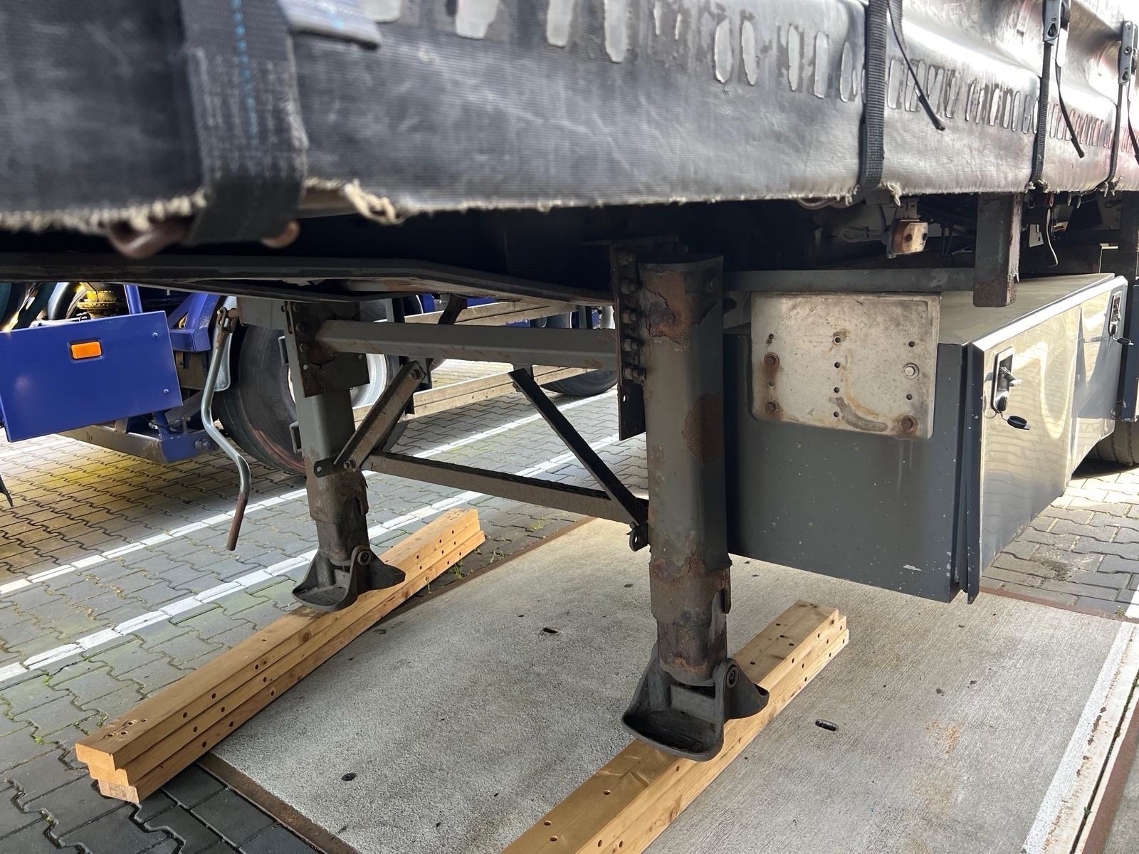 | Constructie beschrijving | 1e en 3e as gestuurd 2e as hefbaar Schuifzeilen. Reclame dient er door koper afgehaald te worden of zwart geschilderd! kooiaap aansluiting Hardhouten vloer en vast dak |