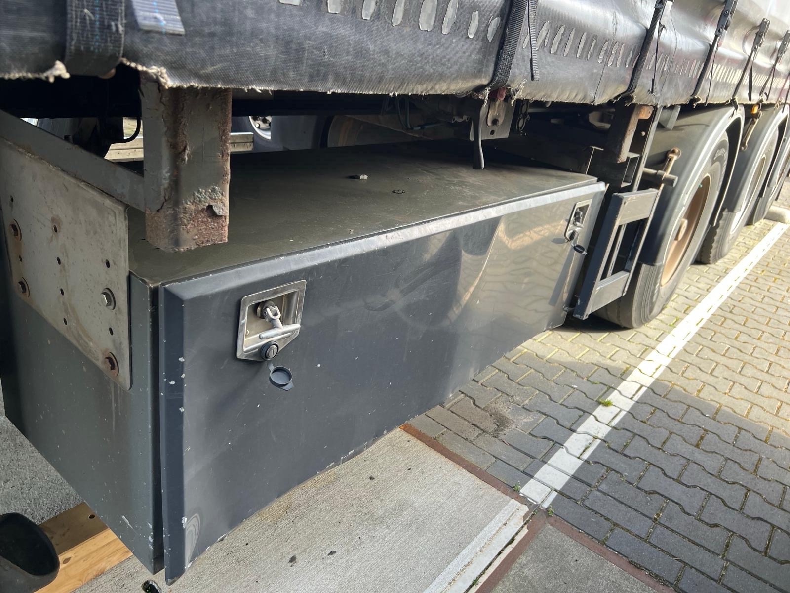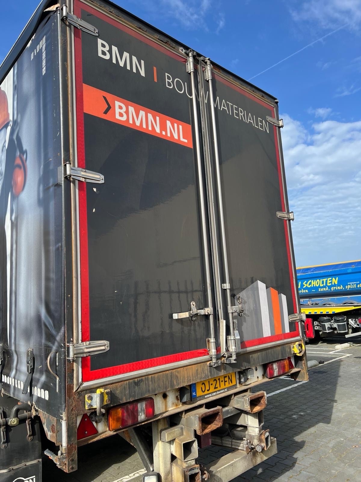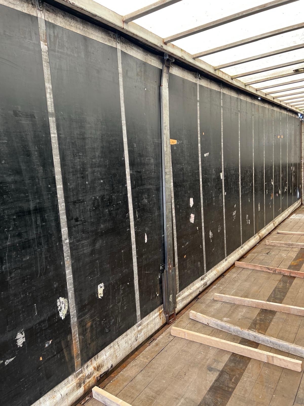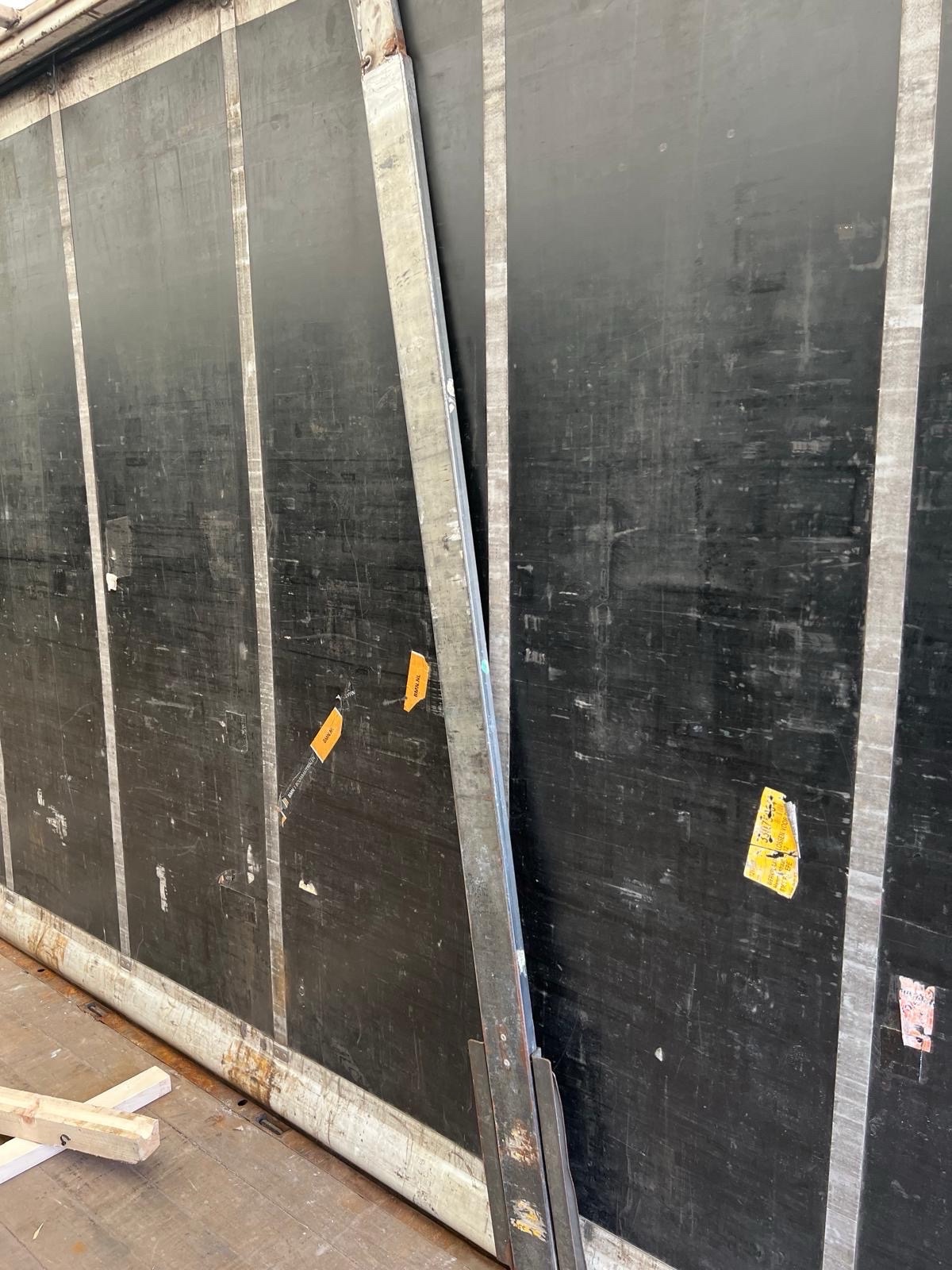 | Constructie beschrijving | 1e en 3e as gestuurd 2e as hefbaar Schuifzeilen. Reclame dient er door koper afgehaald te worden of zwart geschilderd! kooiaap aansluiting Hardhouten vloer en vast dak |