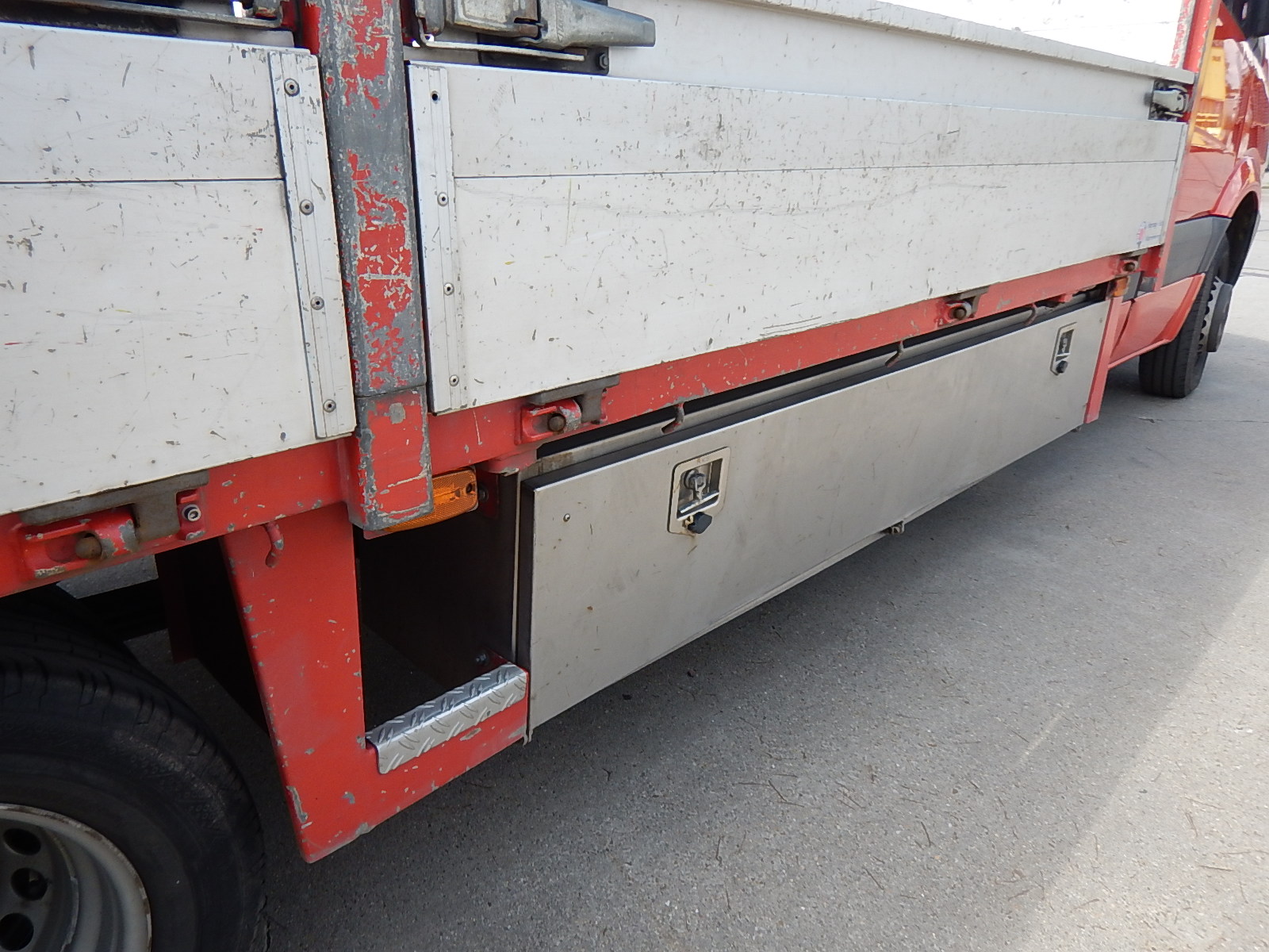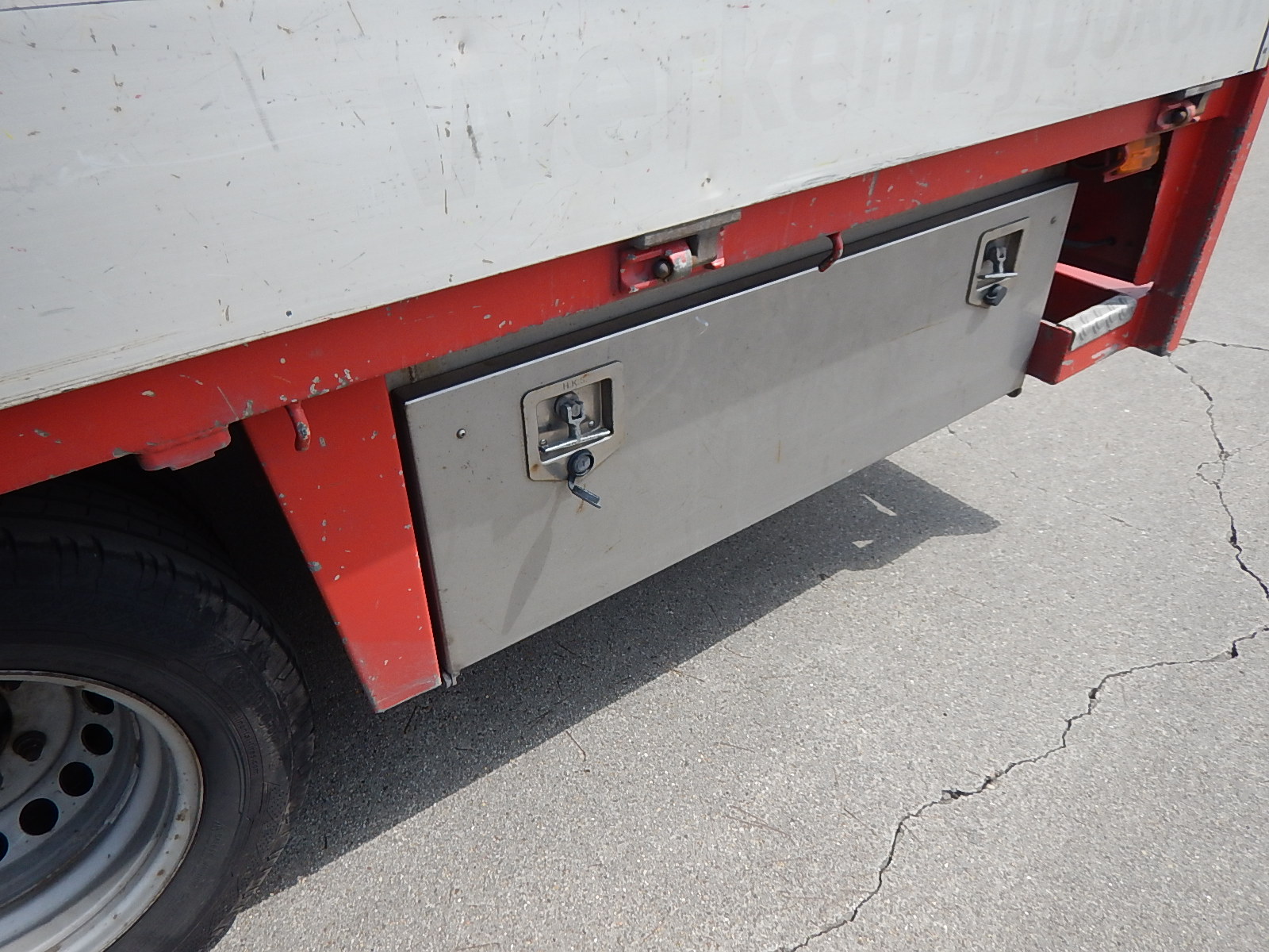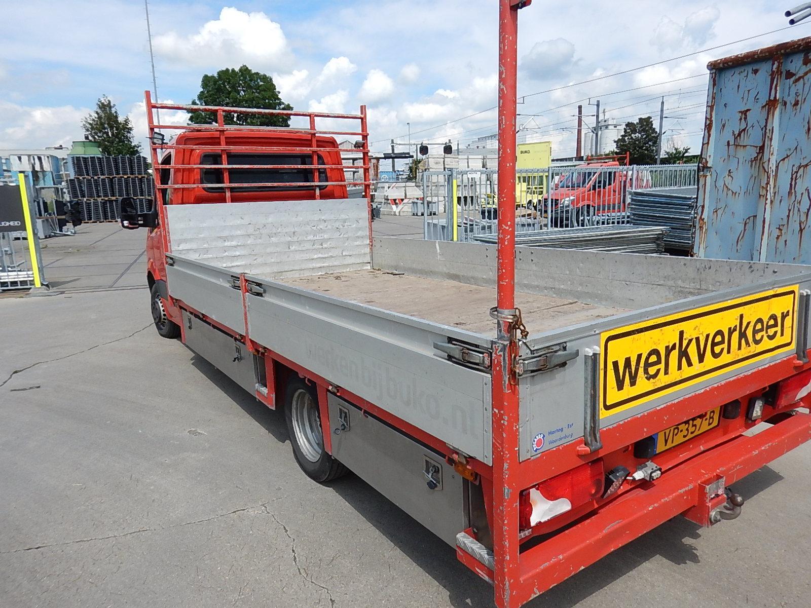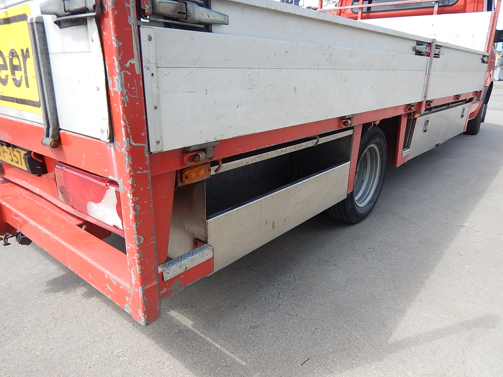 | Constructie beschrijving | Mooie uitgebreide laadbak met RVS kisten links en rechts. Palenrek, aluminium borden en trekhaak. Voorzien van werklampen en flitsers |